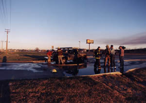 We grabbed what stuff we could out of the front cab. (I grabbed my laptop, digital camera and some of those books I bought a coupla days ago.) and then got away and watched the flaming pyre light out the Arkansas night.