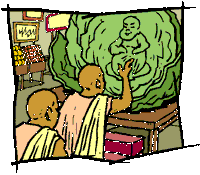 over what appears to be the image of Buddha in a head of cabbage. The small