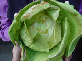 She pulled a few leaves of the cabbage apart, and a pattern of discoloration