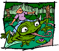 "Scruffs was barking like crazy." Timothy told me, "He would stick his nose into this big bush and then come out and just howl up a storm. I grabbed him back and took a look and saw the frog. He had gotten tangled up in a plastic six pack holder that was caught on a limb so he couldn't go anywhere. I unhooked him and grabbed him by the leg and dragged him out."