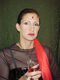 As Jason got us two new rum and cokes at the bar I asked around if any of these black clad Goths were vampires and if they wanted to be interviewed. Sure I got a lot of mean stares through mascara caked eyes but I finally found one girl who said yes. (or at least she didn't say no) She looked the part, with jewels on her face, a ponytail of fire red hair and a pair of sunglasses to shield her eyes. She said her name was Madeleine and as Jason arrived back with the drinks I set up my tape recorder on the table and started asking the questions.