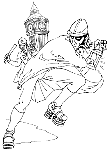 By 1838 London's Lord Mayor had formed a group to catch the rascal which he said was "a menace to the public." The attacks went on anyway and on February 20th a 18 year old woman named Jane Assop was told by a figure outside her home's gate to "bring a light, for we have caught Spring Heeled Jack." According to the report published by the London Times, when she did the man, " . .applied the lit candle to his breast, presented a most hideous and frightful appearance, and vomited forth a quantity of blue and white flame from his mouth, and his eyes resembled red balls of fire . .He wore a large helmet, and his address which appeared to fit him very tight, seemed to her to resemble white oil skin."