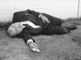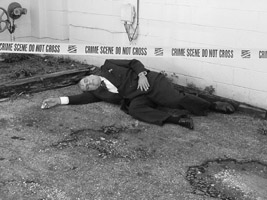 What interests authorities most is how the body was found. Berintino was laying behind a transit authority office with a red cross marked on his forehead and the amputed leg of a chicken in his breast pocket. NYPD lab analysis confirmed that the cross was made of chicken blood.