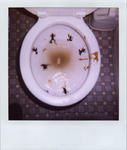 A couple of weeks went by and I started getting stomach aches real bad. One day it got so bad I stayed home from school. Well I just got sicker and sicker and then I got that feeling like you have when you know you're going to throw up. I rushed into the bathroom and stuck my head over the toilet just in time. I felt these chunks coming out of my mouth but I didn't realize what they were until I looked in the toilet bowl and saw the frogs! They were all alive but moved real slow. I know they weren't in there before I threw up and the only thing I can think of is that somehow I got some tadpole eggs mixed in with that pond water I was drinking and swallowed them. I decided to take a picture of it so I could prove it later.