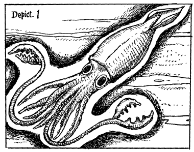 So just what does this thing look like? What use are tentacles out in the desert? One explanation might be found in the 1972 book, "The Great Sea of Texas" by Simon Newland. Newland claims that a huge body of water lies under most of Texas, trapped there when the continents were shifting about millions of years ago. He further states that this body of water contains millions of unknown sea creatures that were trapped in this sea and have been forced to evolve in the total darkness of the underground reservoir. Newland's theory sounds like total nonsense but two occurrences in Texas history seem to bear him out. The first occurred in 1841 when a group of pioneer settlers were trudging through the Texas prairie and came upon the remains of a large lake. Reverend Joseph Humpter, who was with the expedition, wrote about the discovery in his memoirs.