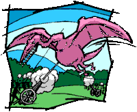 What your friend at the University of Florida has identified as Pteranodon longiceps is incorrect - it is actually either a Rhamphorynchus or Campylognathoides, (both of which represent the European pterodactyl families that have "diamond tipped" tails. It's probably a Rhamphorynchus longiceps, as such a specimen did indeed exist. ) The more serious charge regards the use of Pteranodon over Pterodactylus- It's like calling an albatross a sparrow. Pteranodon is a large Cretaceous flying reptile that inhabited the shores and bays of N. America about 65 million years ago. It had a wingspan of up to 35 ft. and a crested horn on the back of its head BUT NO TAIL- YOUR ILLUSTRATION CLEARLY HAS A TAIL! As for Pterodactyls, the largest ones petered out at around a 5 ft. wingspan. And they had tails. So the photograph w/ the soldiers is indeed a Pteranodon but the illustration is misused and misnamed. I implore you to take the time to make the change. Once again PterANODON = big with no tail - PterODACTYL = little w/ a tail.