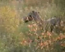 Instead Dwayne took his camera off the tripod mount, turned it on, and jumped across the hedge. At the movement of the man, the animal quickly turned away from the van and moved off at an angle back toward the higher grain.