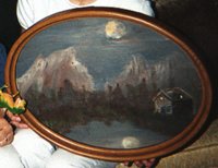 "I was cleaning one day and something made me look at the painting. Nothing seemed weird about it but then I noticed that there was a light painted coming out of one of the windows of the cabin. That was strange because I swear Grandfather Beck didn't paint it that way. He painted that painting by looking at the cabin during the daytime. There weren't any lights on in the cabin while he was doing it.. I thought maybe Ted had done it scare me but when I asked him he swore up and down that he hadn't done a thing.