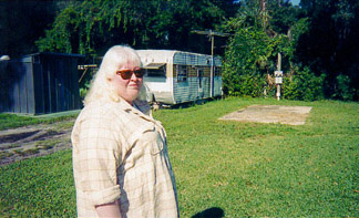 "Nothing big has happened here since they closed down Circus World," says Lynn referring to the now defunct theme park. We're sitting in her home at the Haines City Trailer Park. Outside the window I can hear the roar of citrus trucks as they travel from the groves to one of the many processing plants that line Highway 27. Lynn use to work at one such plant but was forced to quit 5 years ago as her eyes developed severe nystagmus as a side effect from being an albino. She now earns a meager living as an envelope stuffer. Most days you can find her sitting on the abandoned concrete square where a neighboring trailer use to be, watching the tourists go past her on the Interstate.