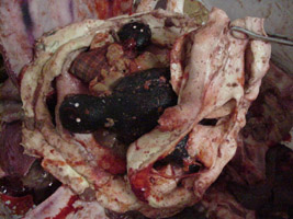 I got all of these autopsy photos in an e-mail from a hotmail account that did not respond to my repeated requests for more information. They were titled "autopsy photos" and then the photos were labeled "bees in lungs, snakes in stomach, voodoo dolls in stomach."