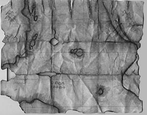 Orleans, France - 23 July 1971 - An anthropological excavation looking for crockware from the late middle ages uncovered a strange map that was (in 1976) carbon dated to roughly the year 500 AD. Found with texts written in what appears to be fifth century Turkish, this map became an instant scandal through the halls of academia, because it was clearly property of the Huns. This map shows the far-eastern coast of Asia (which they debated may have been learned from their preChristian ancestors who lived in the Steppes just north of China), a large ocean containing several islands that have been identified as possibly Japan, possibly the Hawaiian islands, and what appears to be the edge of another continent.
