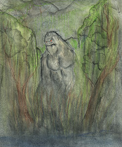 "Big, big and hairy and smelly. I saw him clambering around out there in the woods and hollered but he didn't pay me no never mind." That's how pulp wooder Bobby Gains described the monster after meeting him near the Bill Cypress Preserve in 1985.