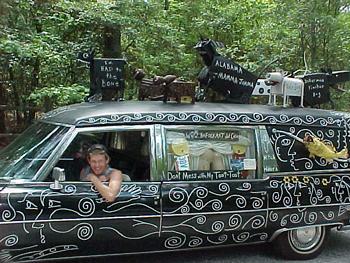 Butch invited us to stay for the day and tool around in his brightly decorated hearse called the "Alabama Mamma Jamma." but we had to move on. Unwilling to leave the place without a souvenir, I picked up a pair of mirror shoes confiscated from some high school in the 60's and said I had to buy them. Butch named a more than fair price and we said our farewells. I left content in the knowledge that I had been to the coolest museum in the world.