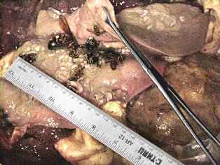 I got all of these autopsy photos in an e-mail from a hotmail account that did not respond to my repeated requests for more information.  They were titled "autopsy photos" and then the photos were labeled "bees in lungs, snakes in stomach, voodoo dolls in stomach."