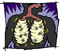 After speaking with the coroner I was dubious that these were real.  There are folktales about animals crawling inside a person.  Snakes are often said to be consumed accidentally with food and then reside in the stomach of the afflicted person. This may be linked with the truth of certain tape worms which can be ingested with spoiled or undercooked foods and reside inside the upper intestine of the human body.  I could find no old legend or news story that corresponded to having bees in your lungs. I spoke with a beekeeper who said that you would have to be "mighty dumb" to get a dozen bees inside you.  The voodoo dolls  were the most dubious of all to me but then I stumbled across a real news story out of Tampa Florida that made me think twice.  I recount that entire story in the voodoo dolls in stomach entry.